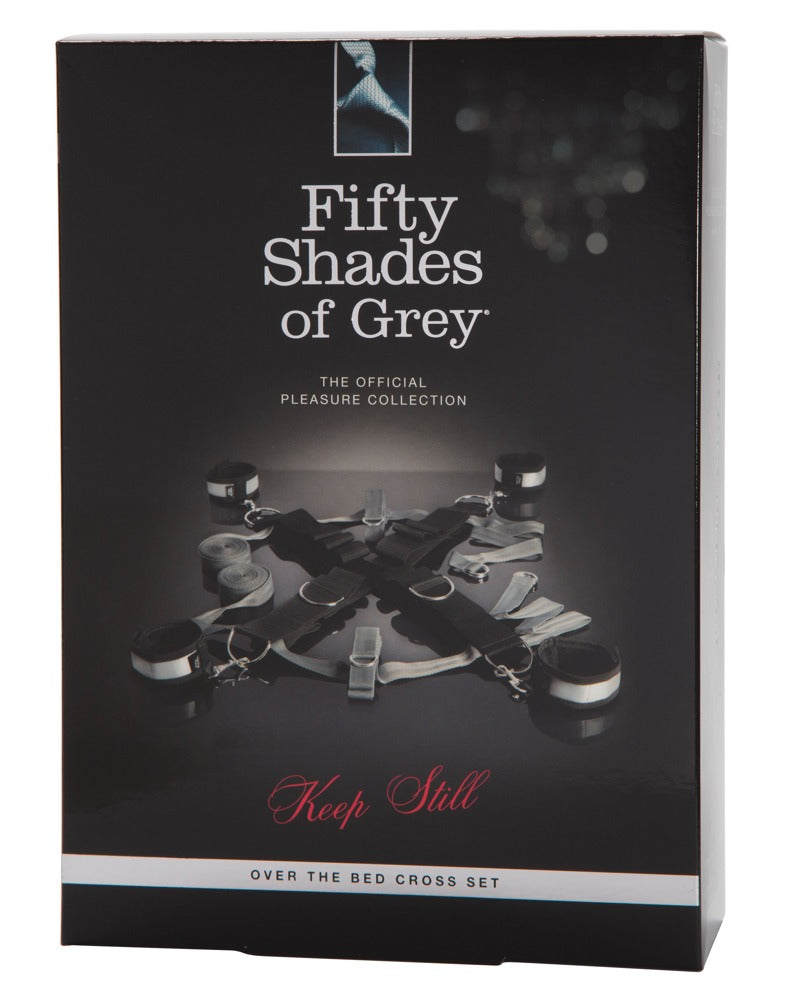 Disse kryssformede sengestroppene (håndjern og ankelstøtter) passer for alle sengestørrelser. Bare legg dem under madrassen øverst og nederst på sengen og la det henge litt ut, for å kunne sette hender og føtter inn i begrensningene. Det er mange forskjellige måter å binde noen på, takket være maljene og karabinkrokene. Inkluderer en øyemaske og dørhenger. Fra Fifty Shades of Grey Pleasure Collection.