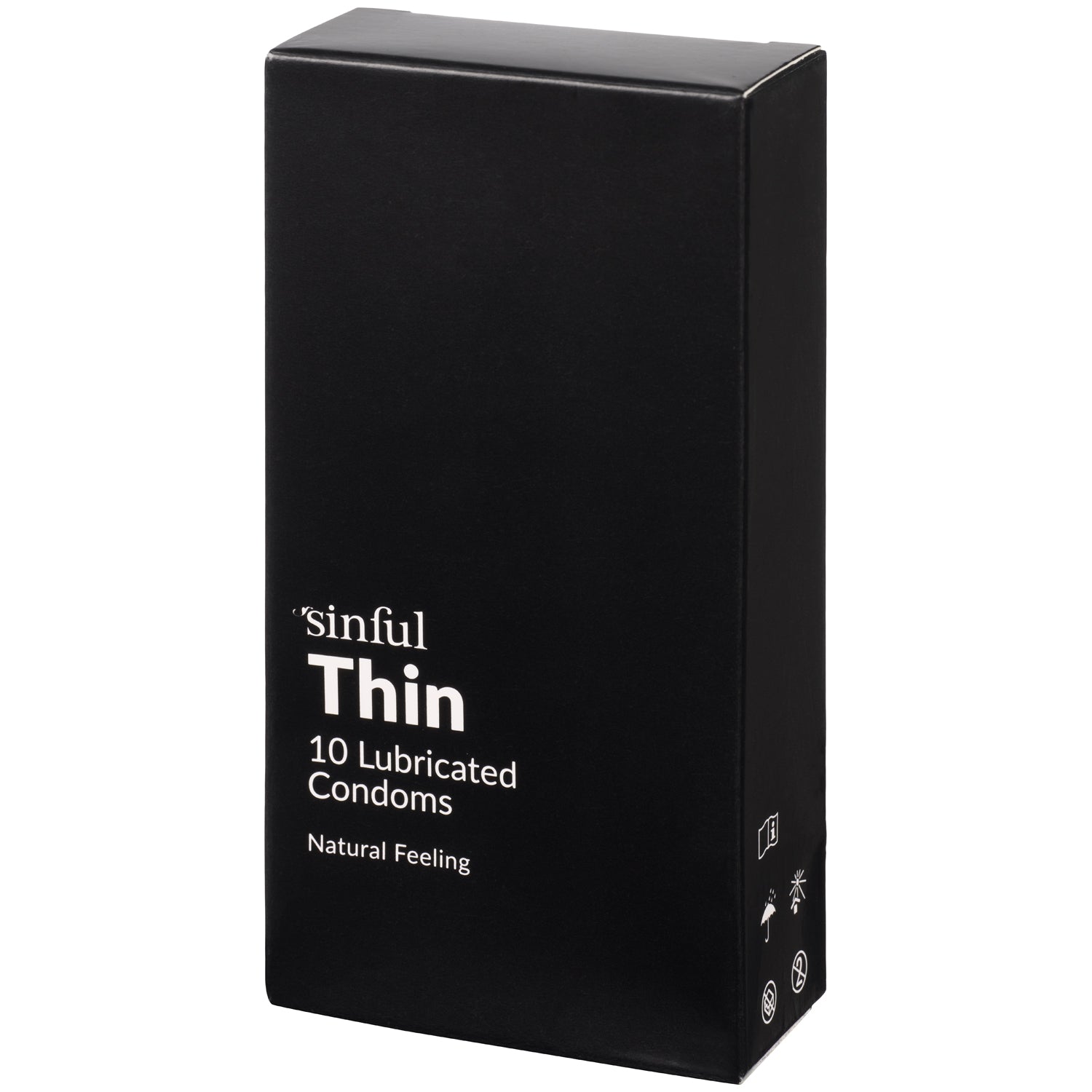 Opplev maksimal følsomhet med Sinful Thin Kondomer. Med en tykkelse på kun 0,055 mm gir de en naturlig følelse, samtidig som de sikrer optimal beskyttelse.