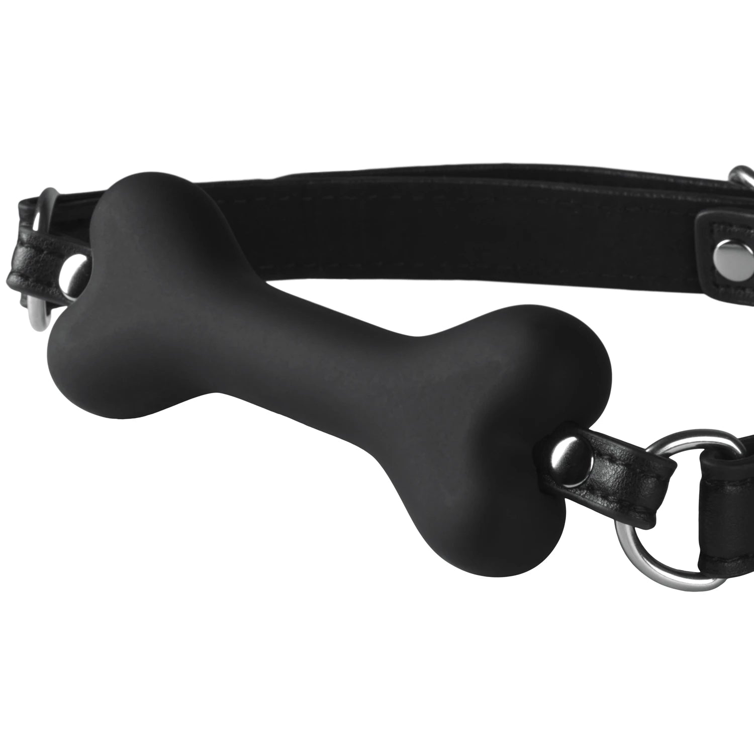 obaie Dog Bone Gag i Silikon og Kunstlær