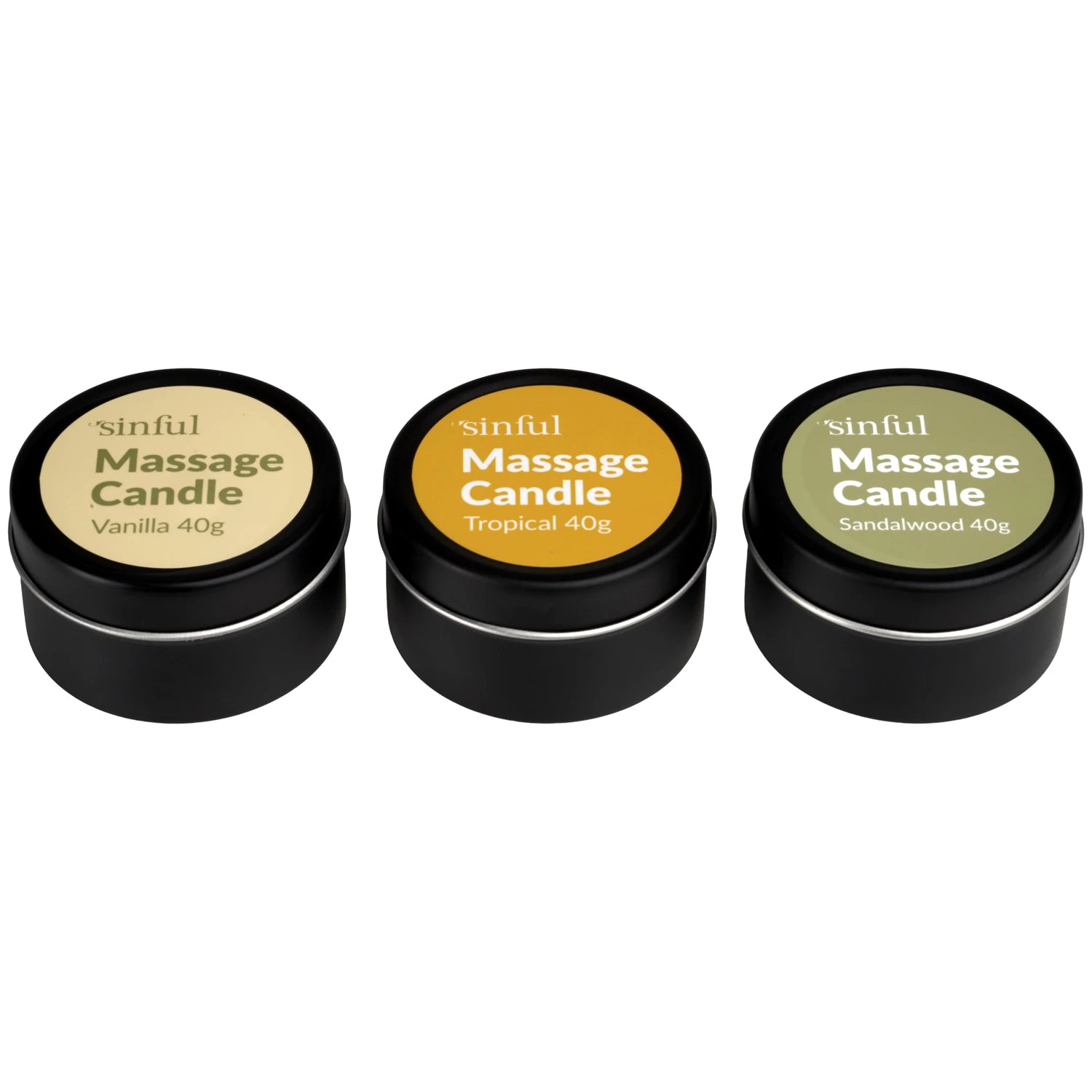 Gjør daten enda mer romantisk med stearinlys. Sett stemningen når du tenner massasjelysene fra Sinful, og nyt lukten av vanilje, tropisk frukt eller sandeltre som fyller rommet.