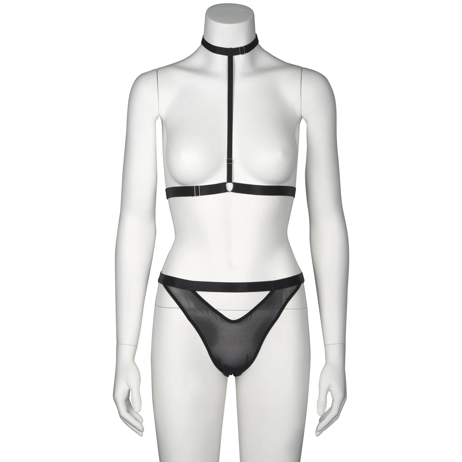 Sexy stropper smyger seg rundt rumpa di og gjør den til stjernen i showet, mens myk mesh med en elegant utskjæring så vidt dekker deg foran. Strap harness chokeren går rundt nakken og smyger seg nedover brystet og rundt kroppen din. Bruk den sammen med noen søte brystvorteskjulere, eller vis frem alt.