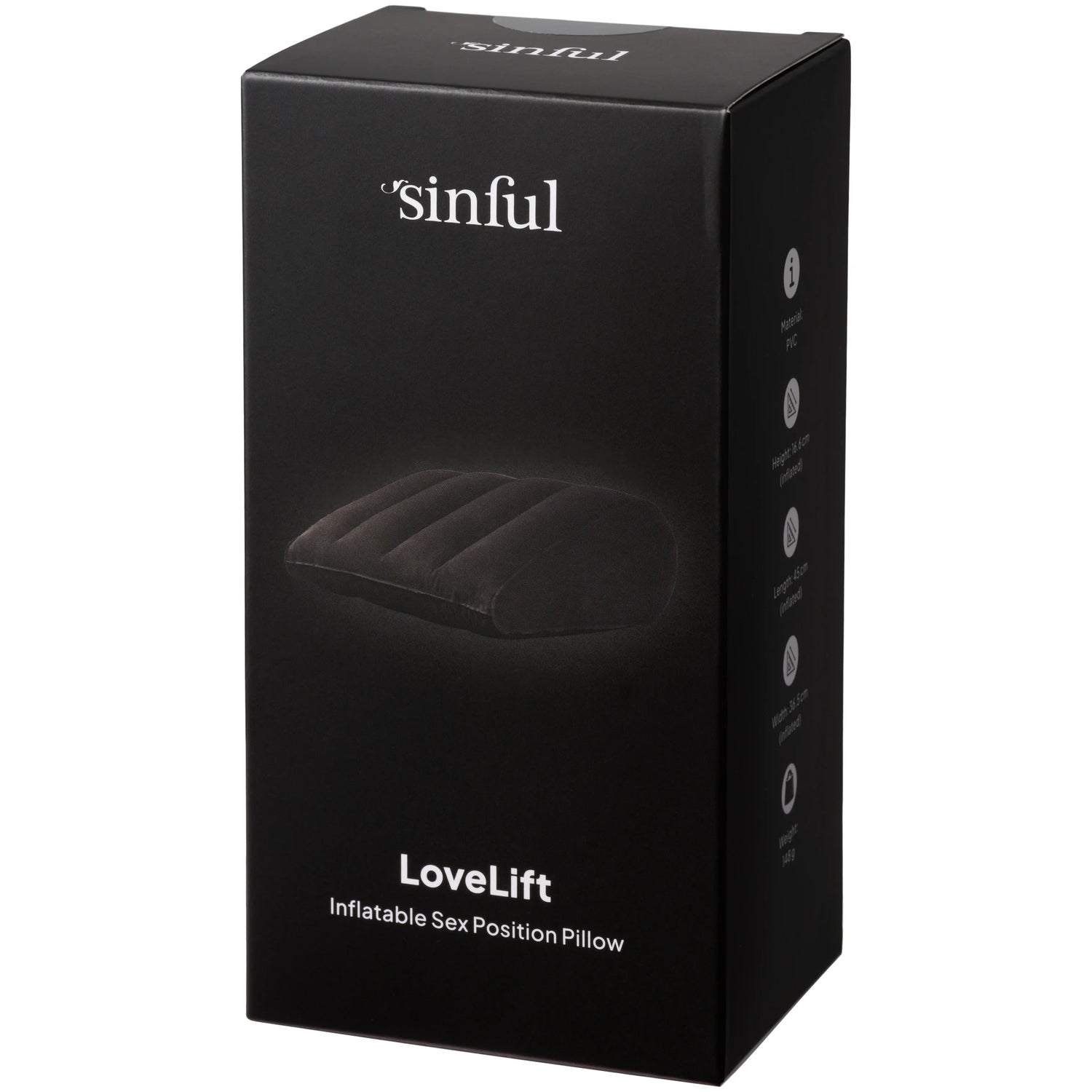 Opplev mer moro på soverommet ved å løfte opp kroppen med Sinful LoveLift Sex Position Pillow. Det myke materialet minner om semsket skinn og dekker utsiden av den oppblåsbare kilen og kan manøvreres slik at du treffer alle de rette vinklene.