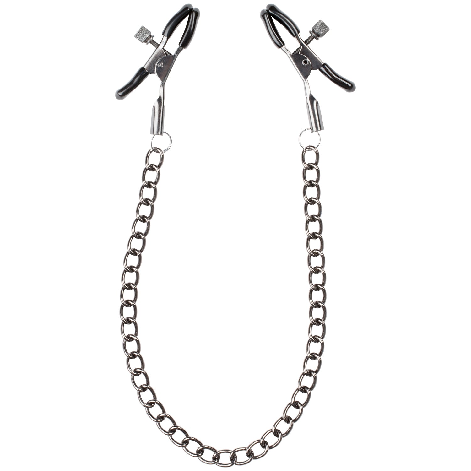 De justerbare klemmene gir et fast, men behagelig trykk rundt brystvortene og skaper en intens, opphissende følelse. Metallkjedet tilfører både vekt og visuell appell, enten det henger ned over magen eller blir trukket forsiktig i.